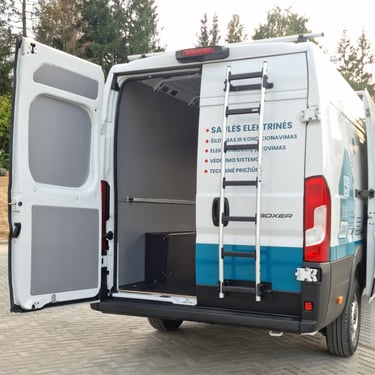 Krovinių skyriaus ir išorės įrengimas naujausiam Peugeot Boxer L4H2 automobiliui.